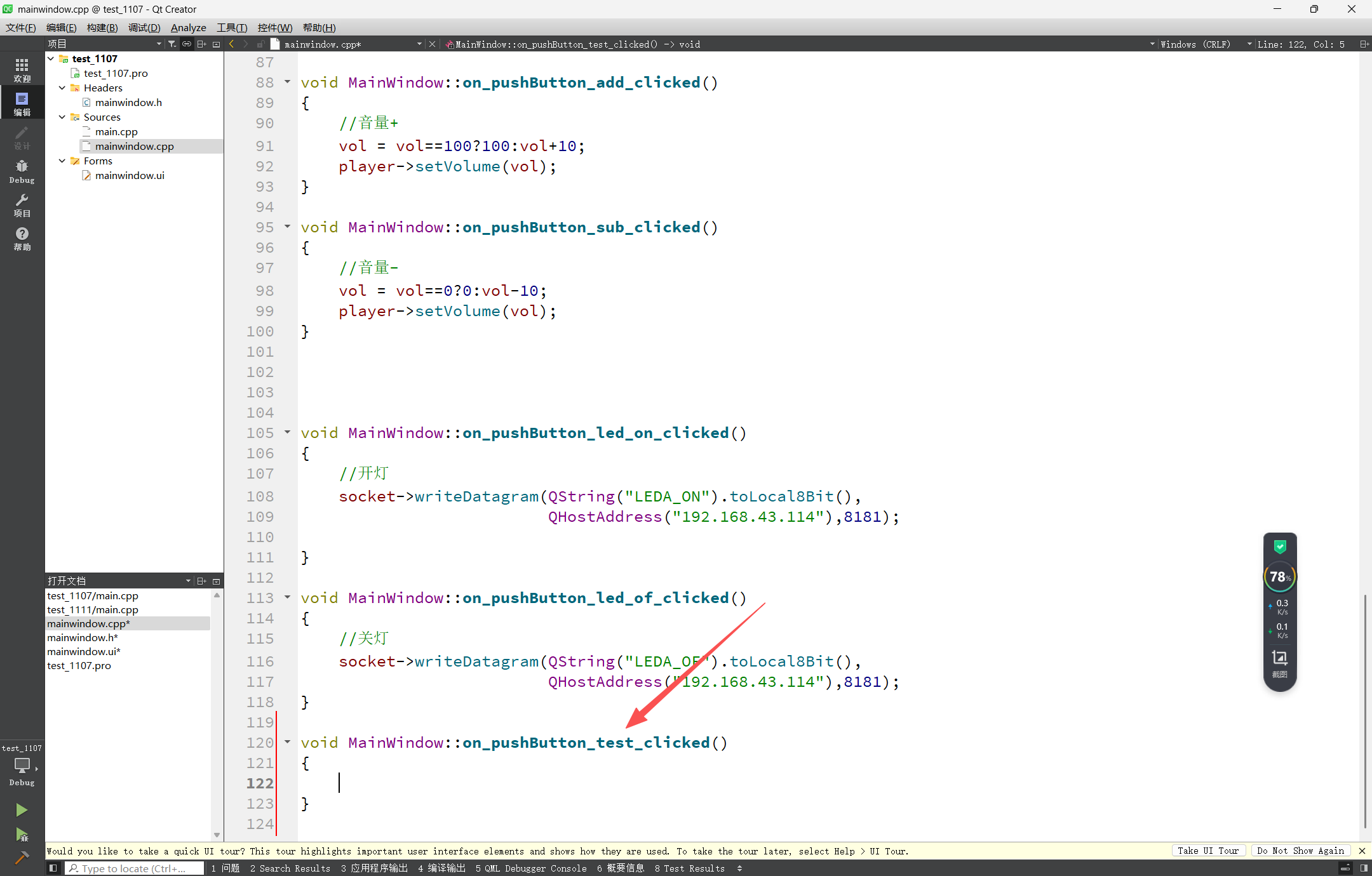//继续创建开灯关灯控件时,程序报错,显示未定义,错因在于定义该语句QUdpSocket*socket,误写成了QUdpSocket*scoket