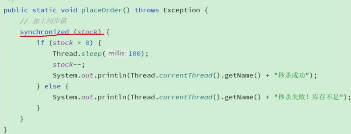 /// <param name="lockKey">锁的 Key(如:"stock_lock_1001")</param>