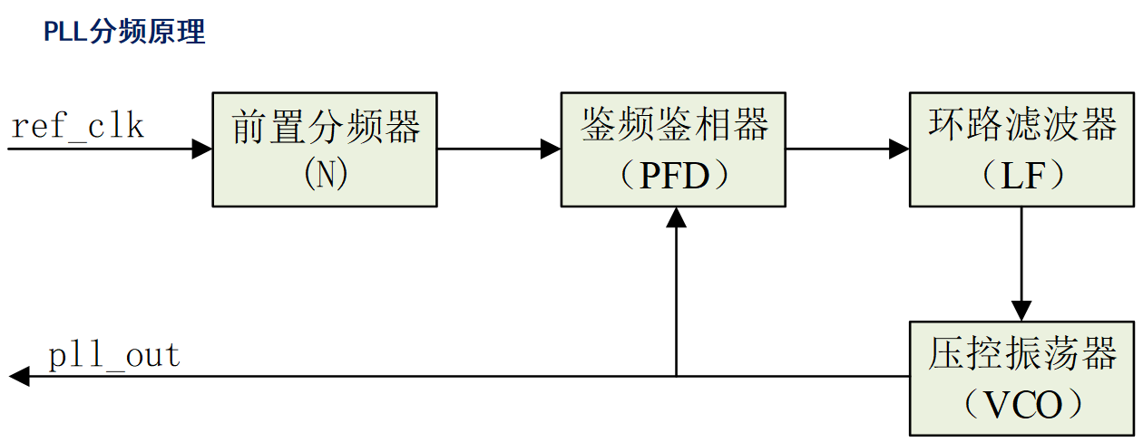 PFD:将ref_clk的频率、相位和pll_out相比较