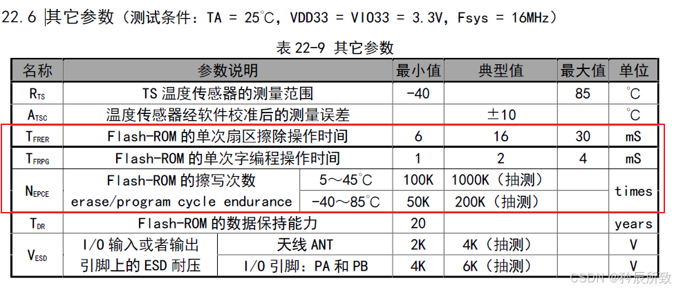 这部分直接在官方芯片手册的最后 参数 章节里有说明,沁恒 RISC-V内核的 CH5Xx 蓝牙 MCU 此处参数相差不大。