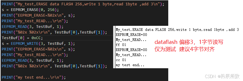 操作 DataFlash 相对要求没那么严格,在 CH585 上是可以 1 字节操作的,我做了个测试: