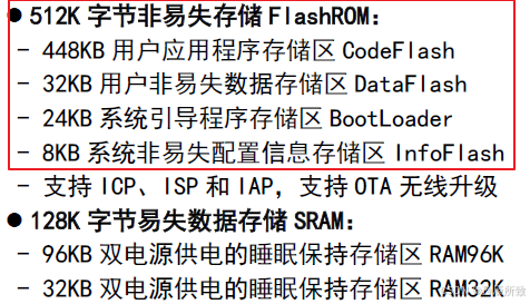 | Code-Flash 最小擦除 | 注释里说明 | 4096 B | Code 区 | 只能用4 KB (页)擦 |