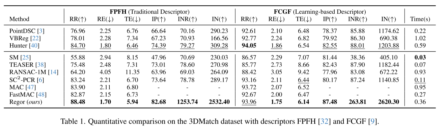 - 在3DMatch上:88.48% RR,2532个正确对应点
