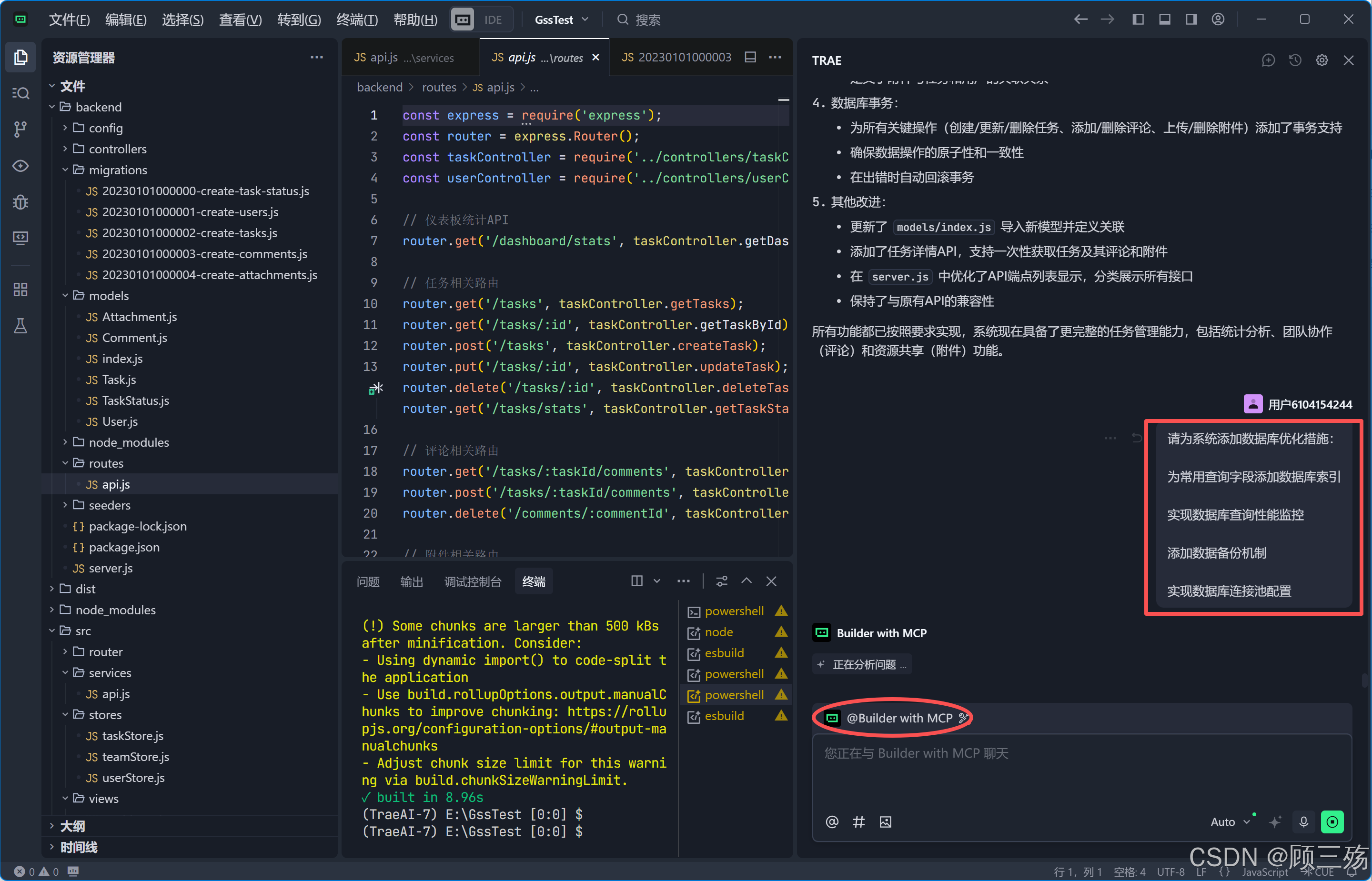 最佳实践是组合使用:用 @Builder with MCP 搭建坚实的全栈基础,用 @Builder 快速探索新功能原型,用 @Chat 进行日常的代码维护和优化。三者协同,将能最大化地提升你的开发效率。