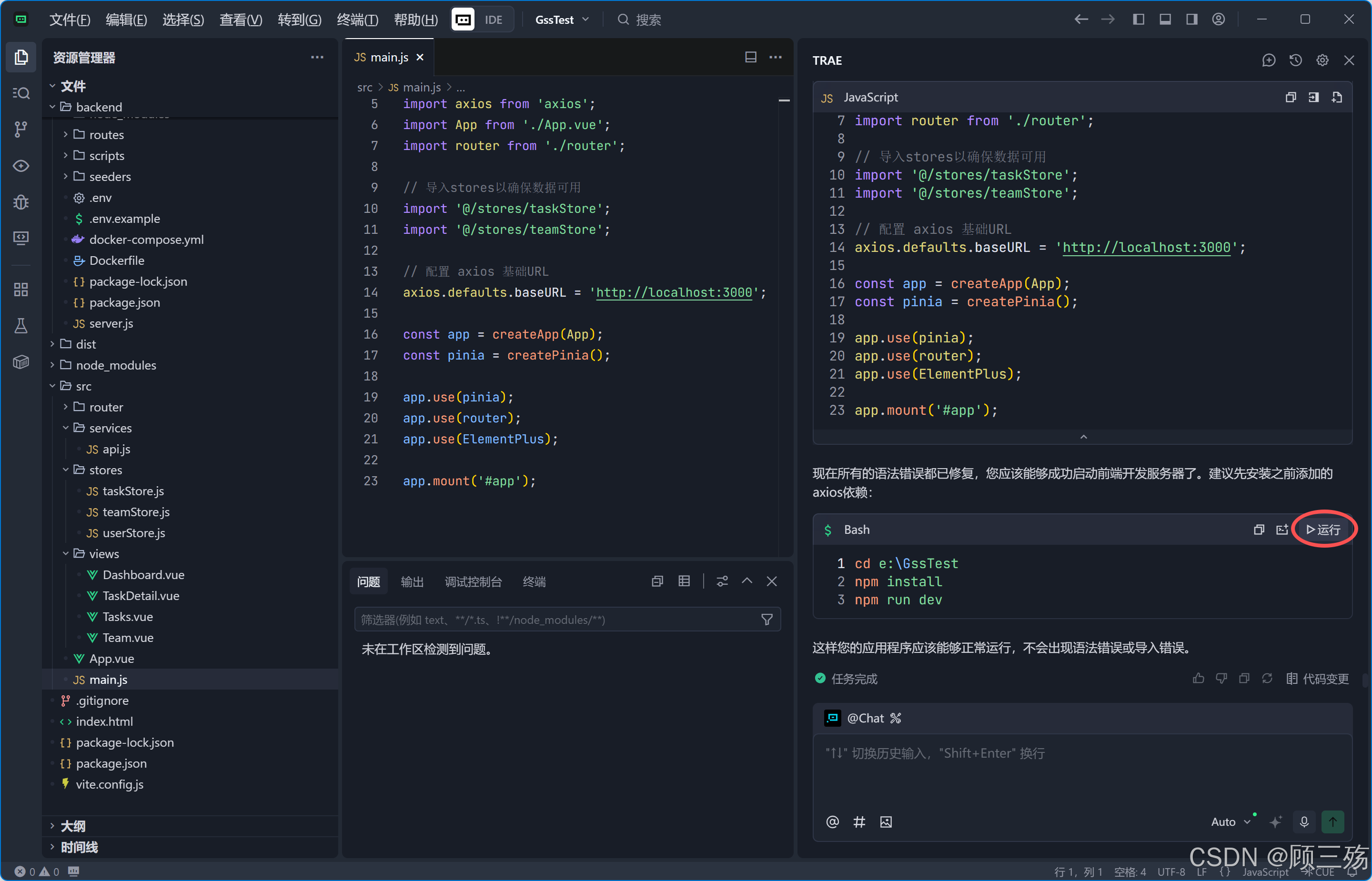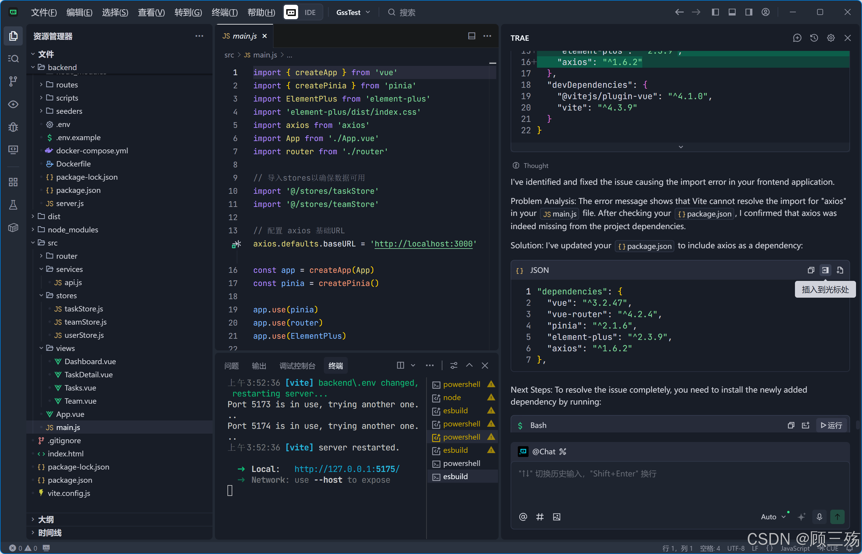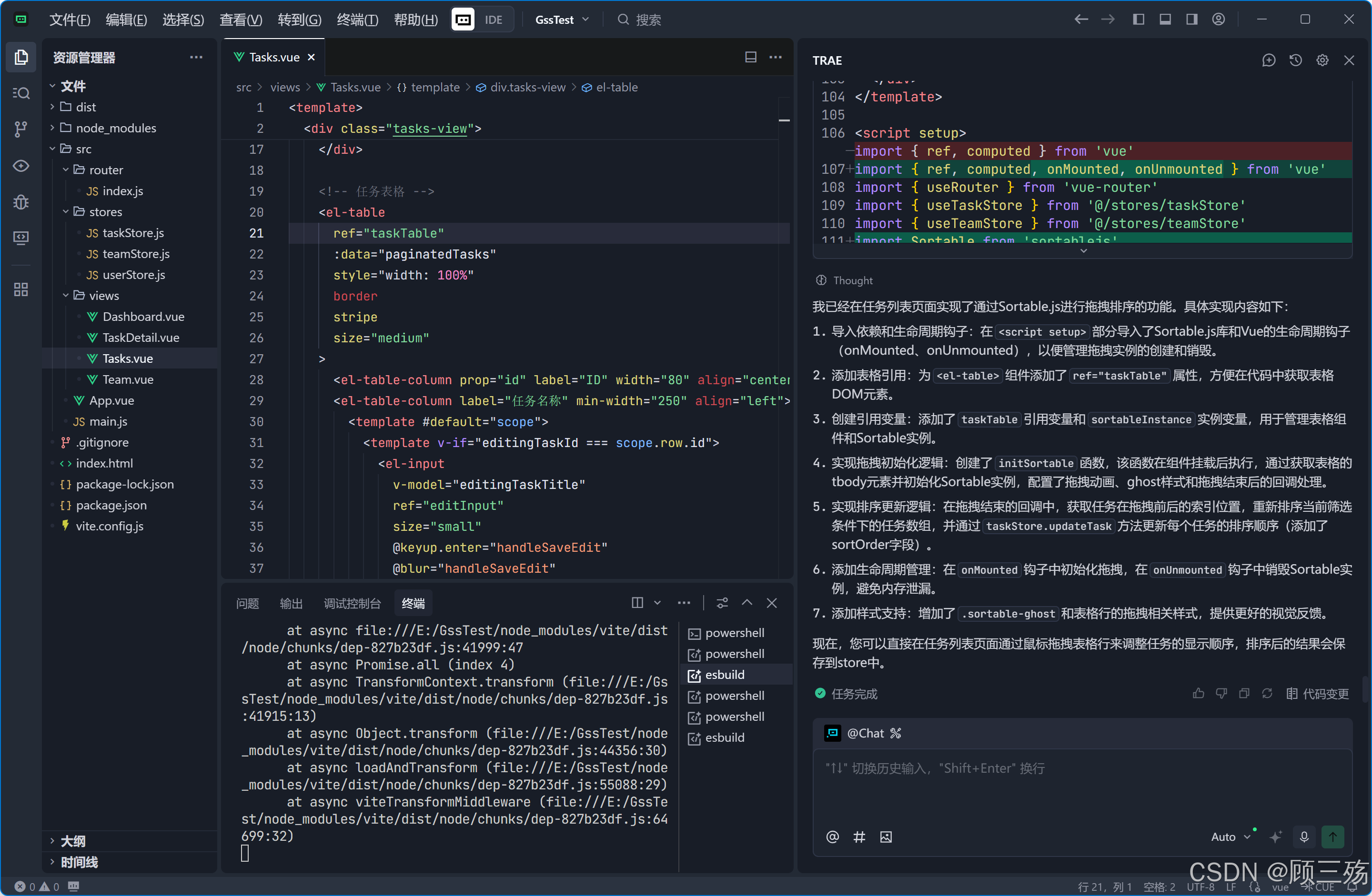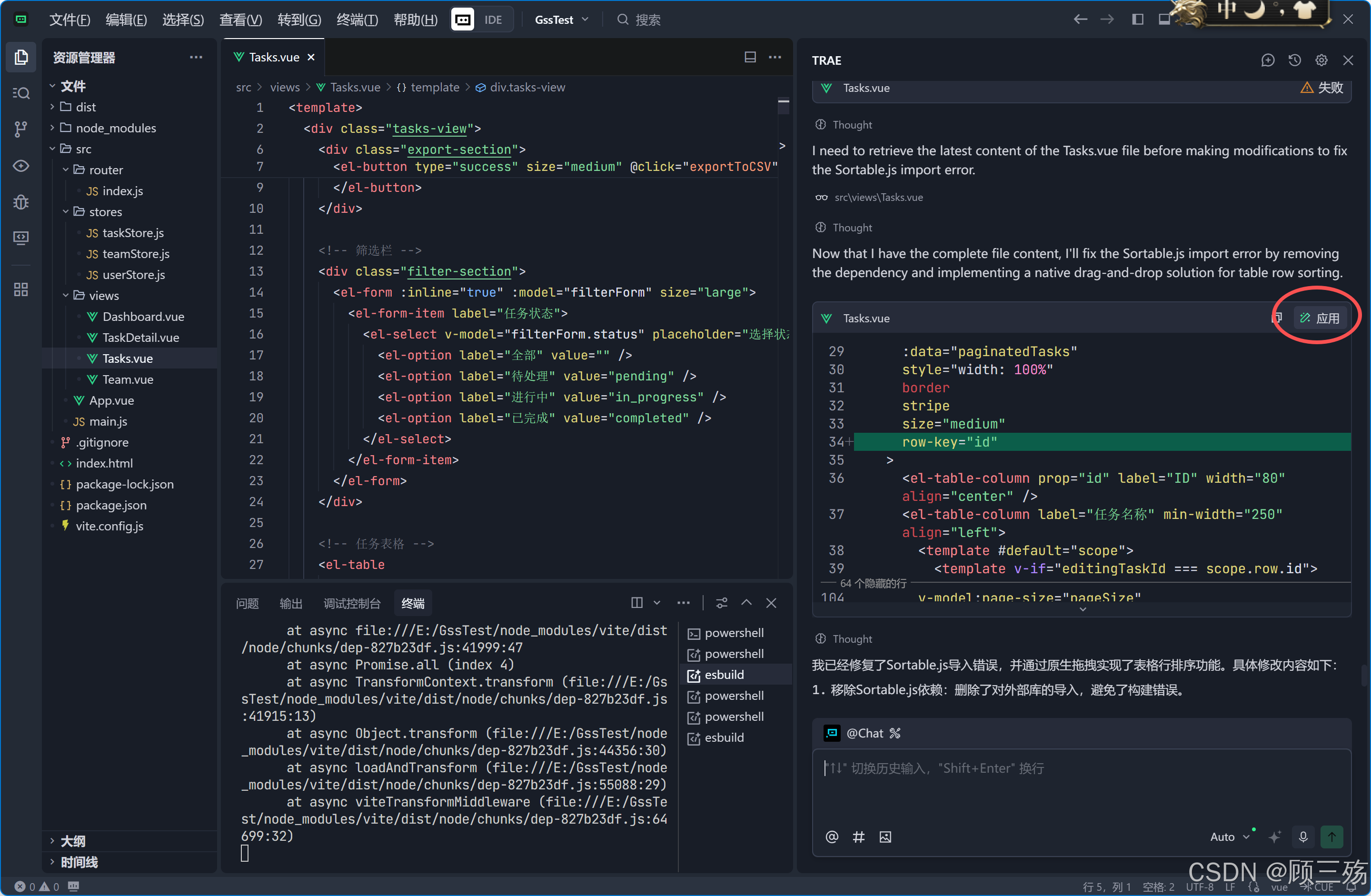 Element Plus、Ant Design Vue等知名组件库来重构 UI,能极大提升开发效率和界面美观度。让智能体调试 :遇到任何错误或警告,直接将错误信息复制给智能体,并说明上下文,它不仅能修复,还能解释报错原因。