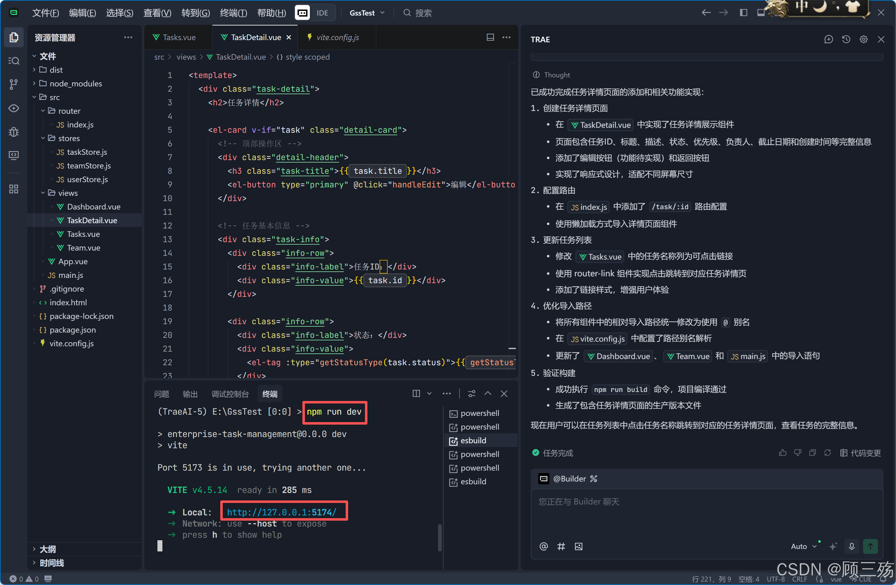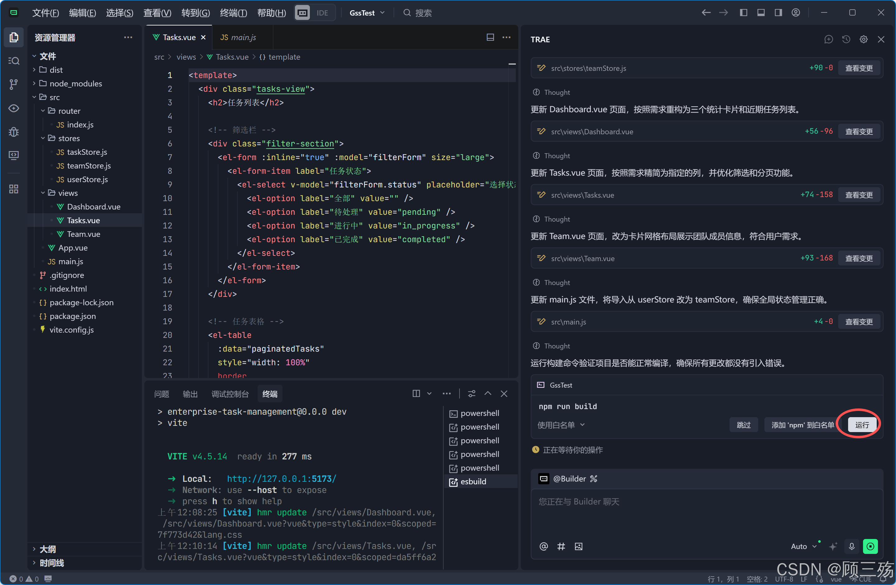 当前状态: @Builder 已生成基础系统,包含仪表盘、任务列表、团队页面和基础布局。
