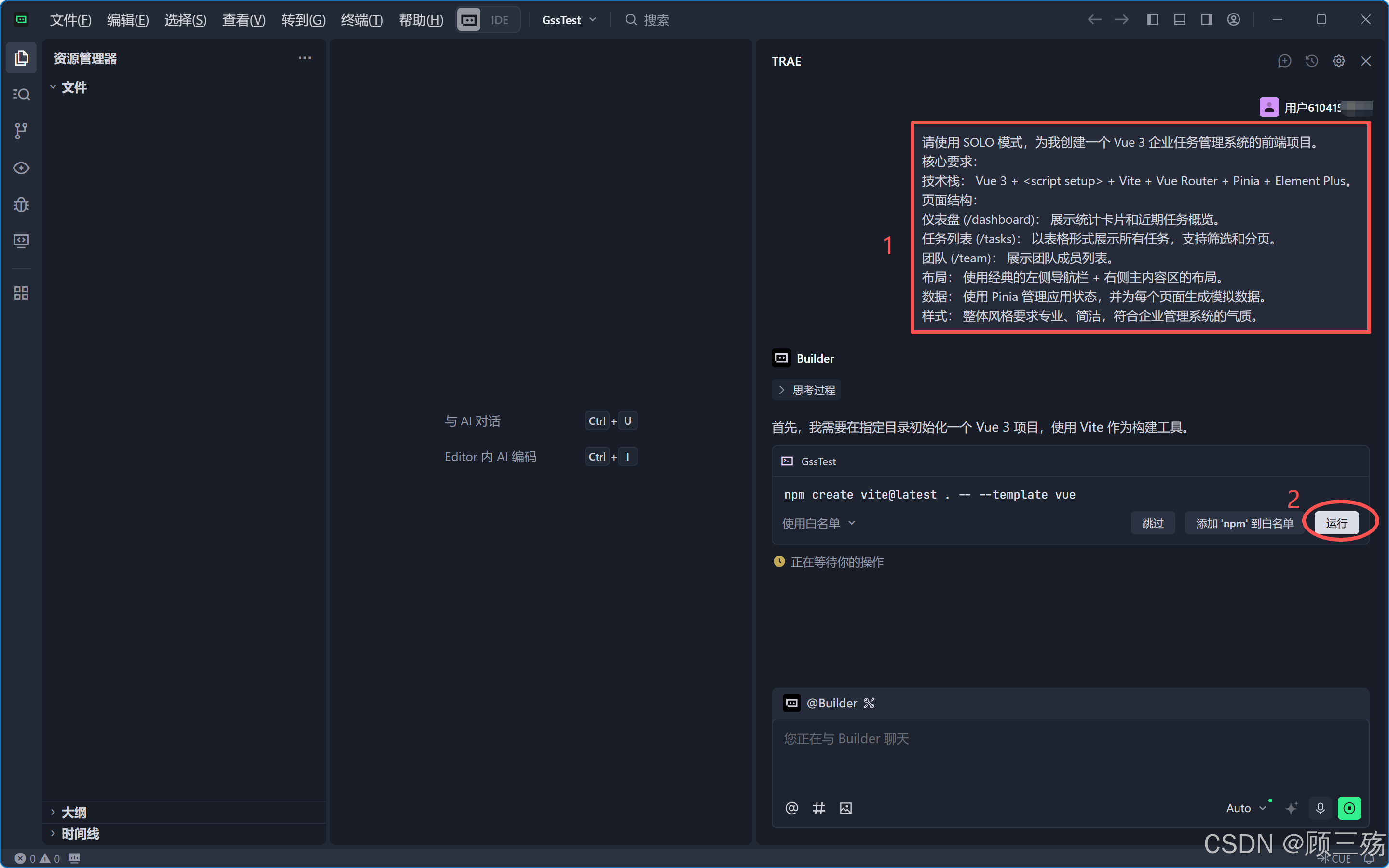SOLO 模式的 Builder 智能体会尝试自动分析并生成整个页面的代码框架,再通过 Chat 智能体进行微调。