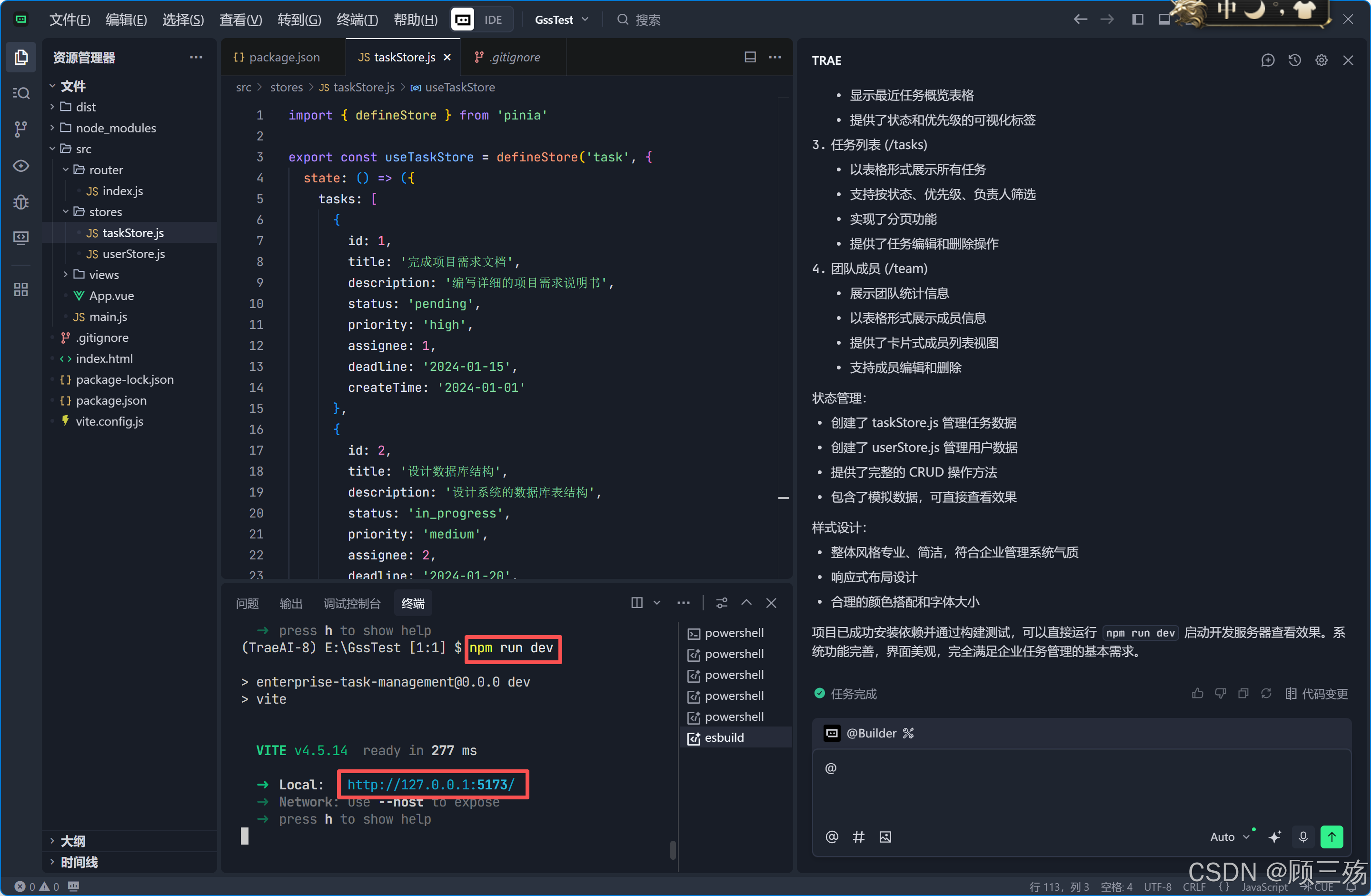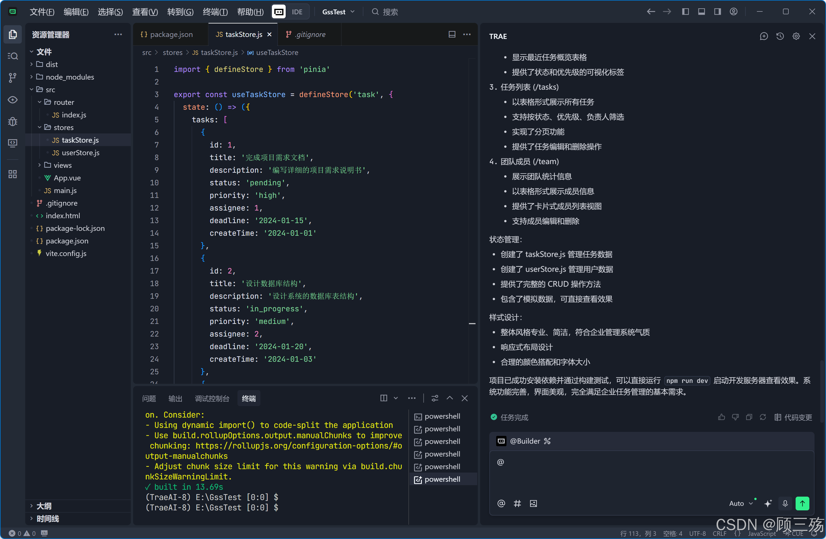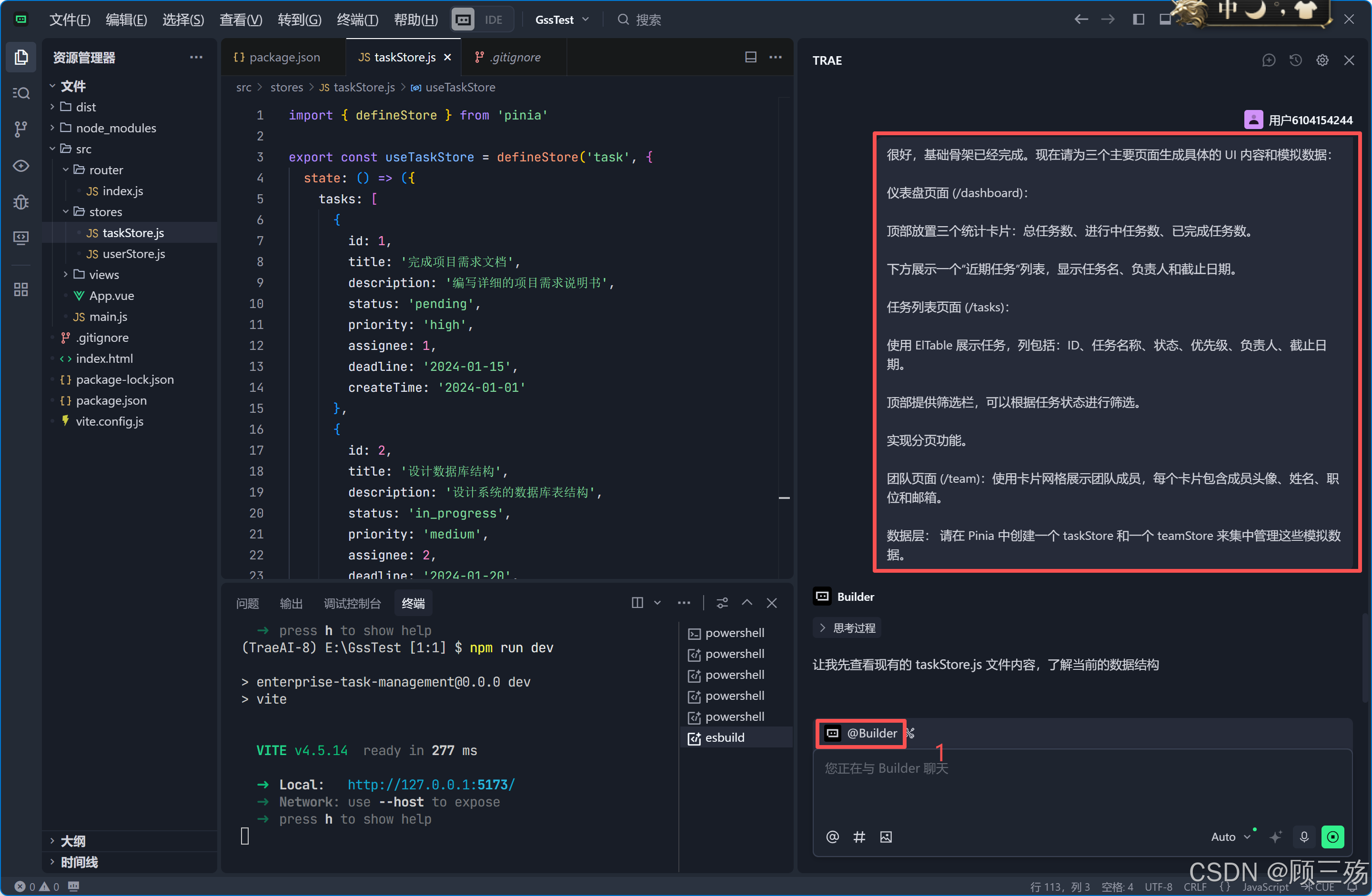 taskStore和一个teamStore来集中管理这些模拟数据。"