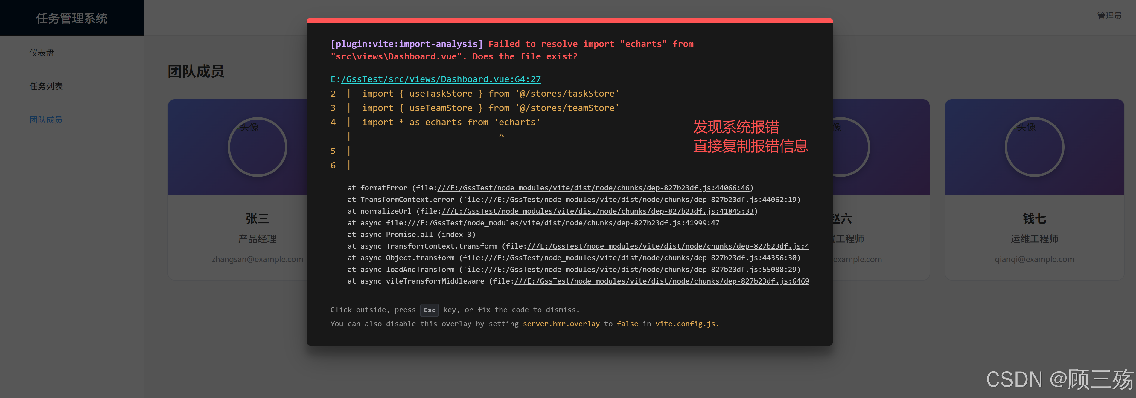 src/stores/teamStore.js:定义members状态,并生成模拟的团队成员数据。生成页面组件: