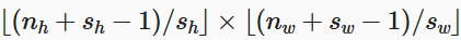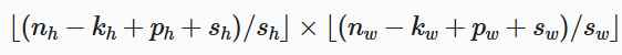 我们刚才说了,输出大小也受ph行填充,pw列填充影响,输出大小为: