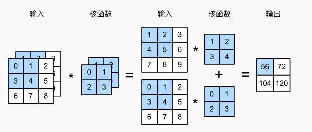 # 先遍历"X"和"K"的第0个维度(通道维度),再把它们加在一起