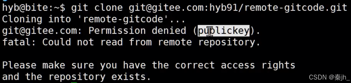 使⽤ SSH ⽅式克隆仓库,如果我们没有添加公钥到远端库中,服务器会拒绝我们的 clone 链接。需要 我们设置⼀下: