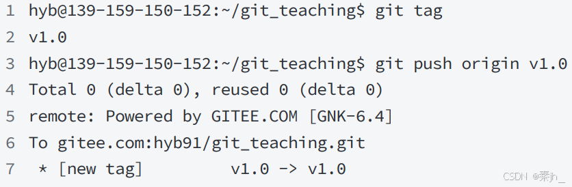 如果要推送某个标签到远程,使⽤命令 git push origin