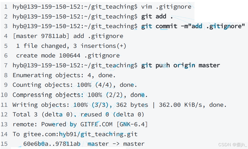 在 .gitignore ⽂件中也可以指定某个确定的⽂件。 最后⼀步就是把 .gitignore 也提交到远端,就完成了: