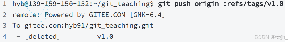 然后,从远程删除。删除命令也是push,但是格式如下: