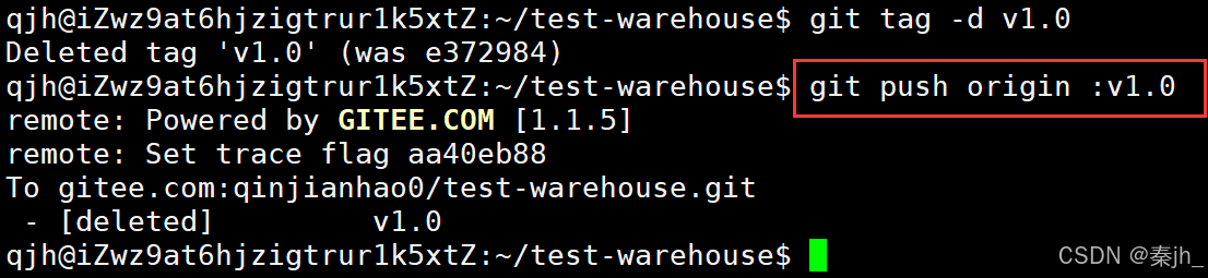 此时,查看远端码云,看到了标签已经被更新