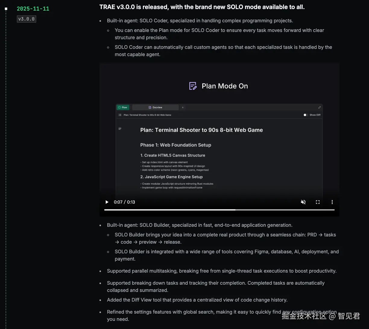 除了 SOLO 模式,Trae v3.0.0 还有一些其他重要更新。