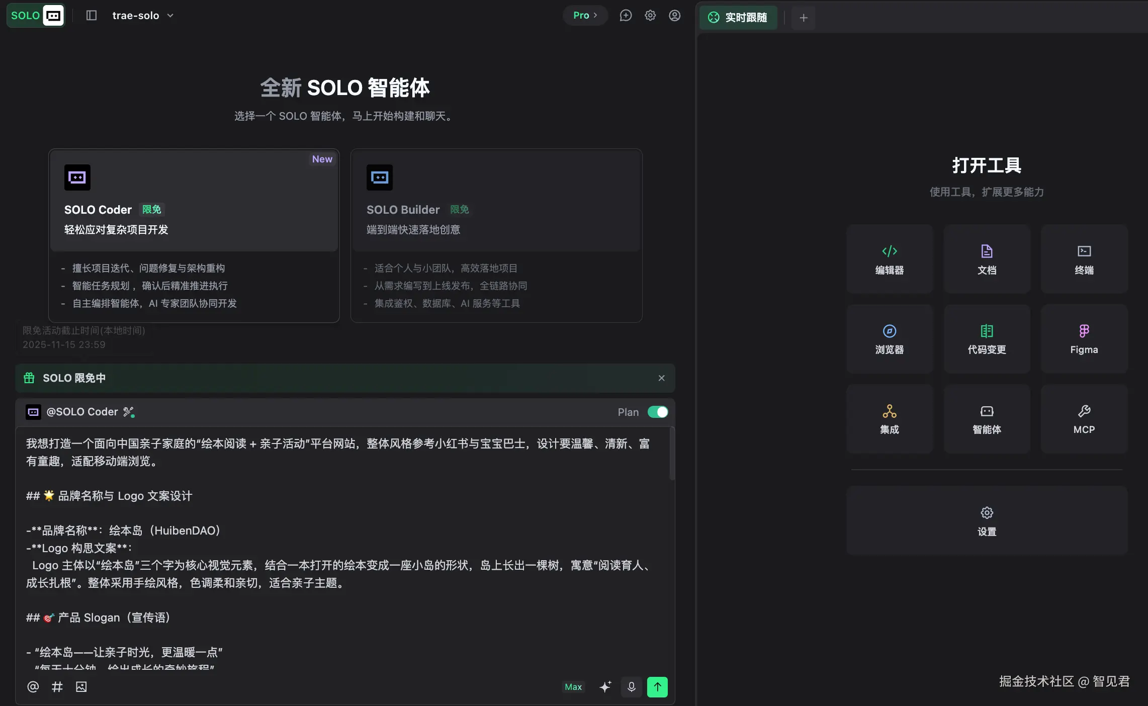 以防你不了解 SOLO 是啥,参见此前发表的 体验了Trae 2.0 SOLO 模式,超酷!,以下给大家介绍最新的 SOLO 模式。