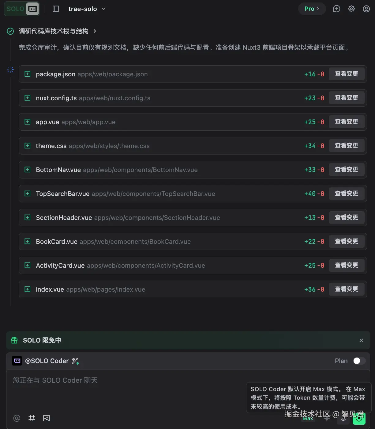 - 对于 SOLO Builder 生成的代码,建议还是要做 Code Review。自动生成的代码不一定完美,可能需要你做一些调整。
