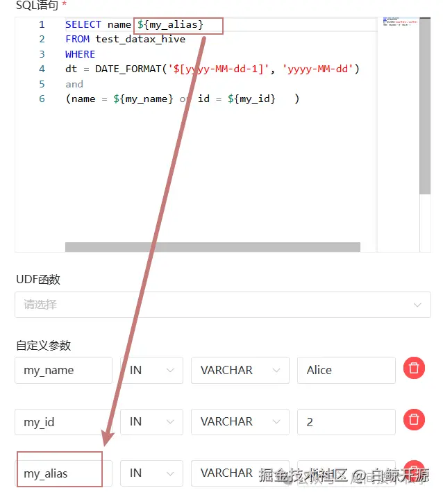 TIPS: 不要在别名的地方使用自定义参数,会触发BUG