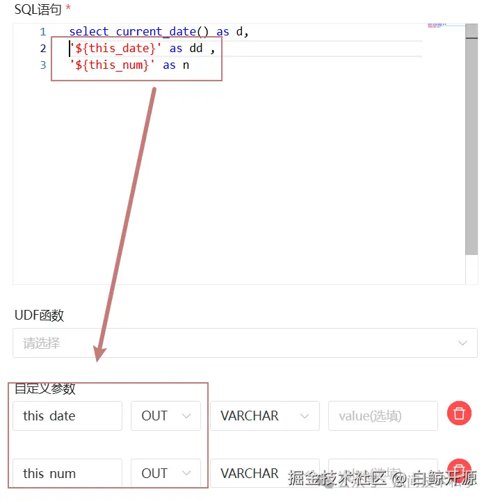 为解决 SQL 节点无法使用 <math xmlns="http://www.w3.org/1998/Math/MathML"> 参数的问题, D o l p h i n S c h e d u l e r 提供了强大的 {} 参数的问题,DolphinScheduler 提供了强大的 </math> 参数的问题,DolphinScheduler提供了强大的 [...] 衍生函数语法,支持任意格式的日期拼接与运算,推荐在所有场景中优先使用。