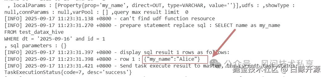 DolphinScheduler 支持在任务之间传递运行时生成的参数,适用于"上游查询结果 → 下游处理"的场景。