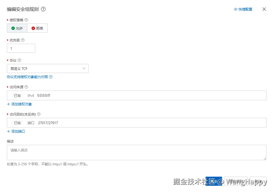 0.0.0.0 代表允许外部任何IP地址访问MongoDB数据库。