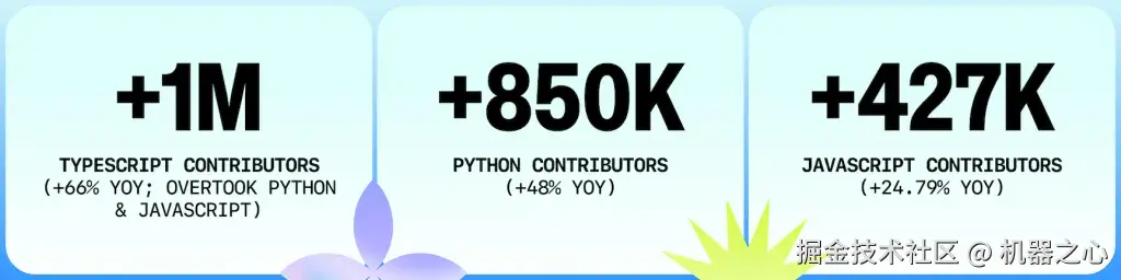 GitHub 报告表示:「这一里程碑事件是过去十年来开发者转向类型化 JavaScript (typed JavaScript)趋势的集中体现,也标志着 TypeScript 正在成为现代开发的新默认选项。」