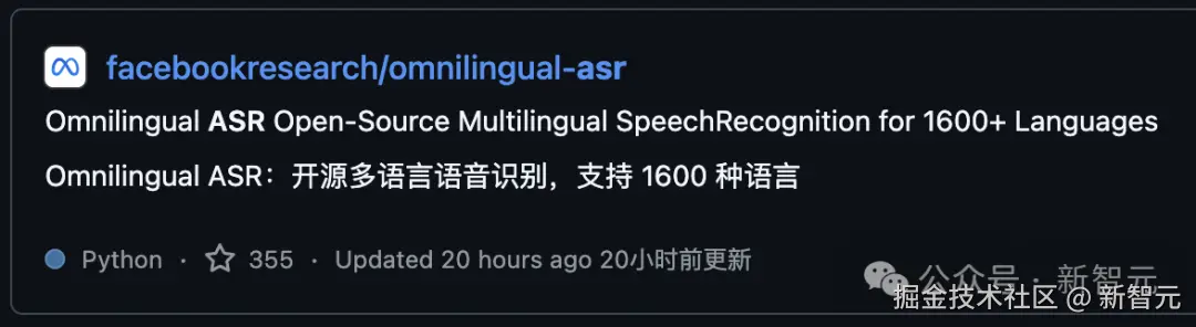 Meta 选择将这一庞大的多语种 ASR 系统在 GitHub 上完全开源,采用 Apache 2.0 许可发布模型和代码。