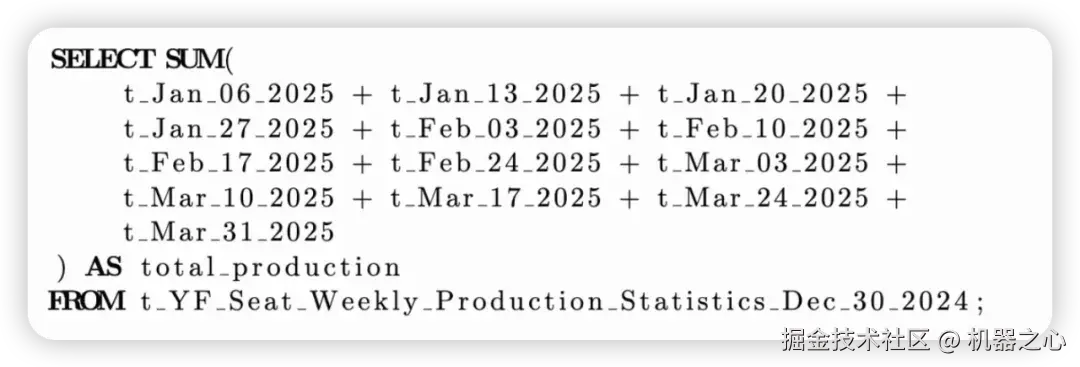 - 最终答案:基于执行结果,系统给出了「...2025 年第一季度...所有产品的总产量为 245036 件」的准确回答。