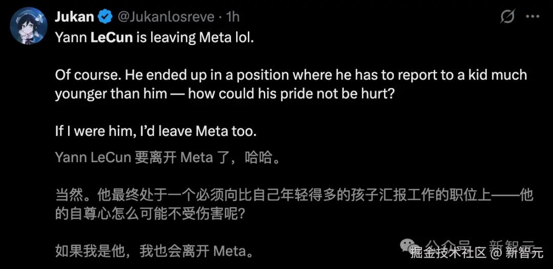 有网友表示,这并不意外。另有人调侃道,「要始终向一个孩子汇报工作,LeCun 的自尊心怎么不会受到伤害呢」。
