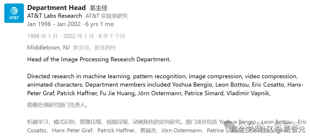 LeCun 留在了 AT&T,负责一个专注于图像处理研究的实验室小组。