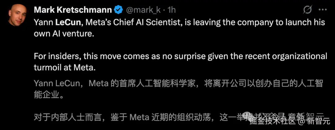 消息一出,瞬间引爆全网。此前,坊间传闻称,LeCun 因不满内部架构调整想要离职。