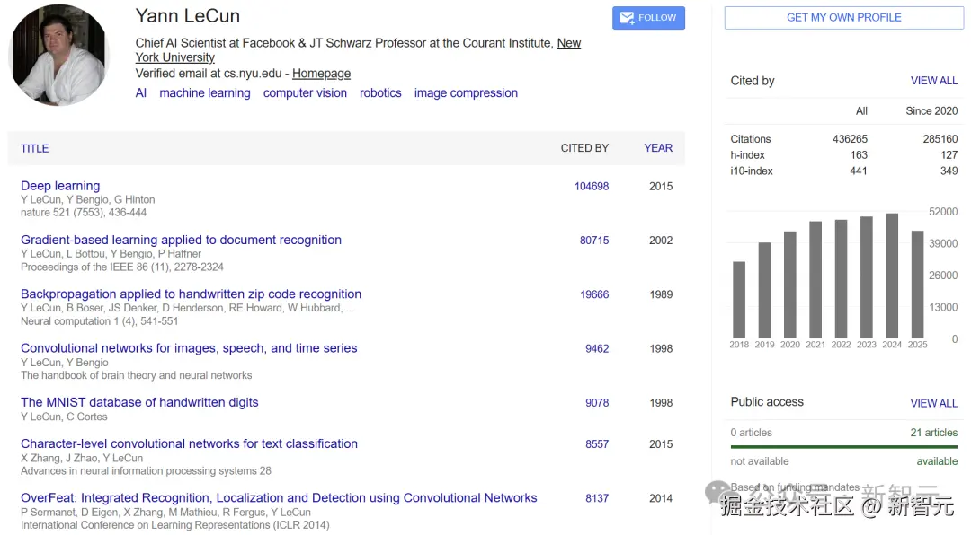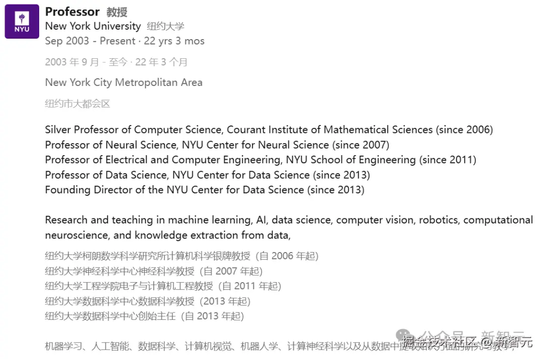 2003 年,LeCun 离开工业界,前往纽约大学库朗数学科学研究所担任计算机科学教授。