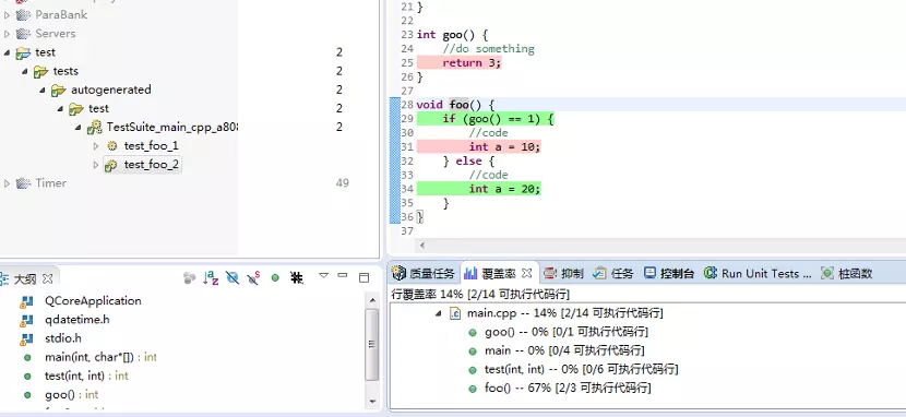 当两个测试用例一起执行的覆盖率截图如下所示: