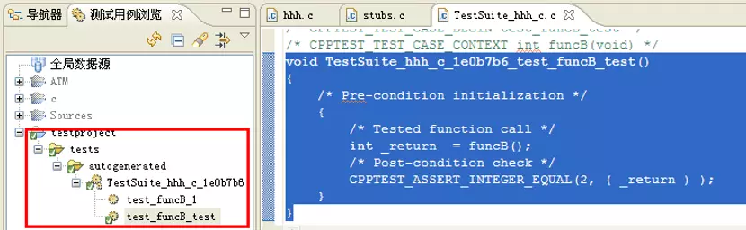 在cpptest自动化生成的测试用例及桩函数使用中,测试用例调用桩函数的过程是封装的,所以当一个测试用例被设计完成后,它的调用桩的对象是固定的,而一个被打桩函数如果存在多个返回值情况,被测函数根据被打桩函数返回值做一些其他动作时会无法对进行准确测试。例如: