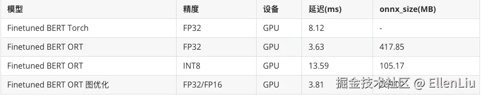BERT ORT 混合精度图优化模型在延迟上与BERT ORT FP32接近,但模型大小显著减小。 -