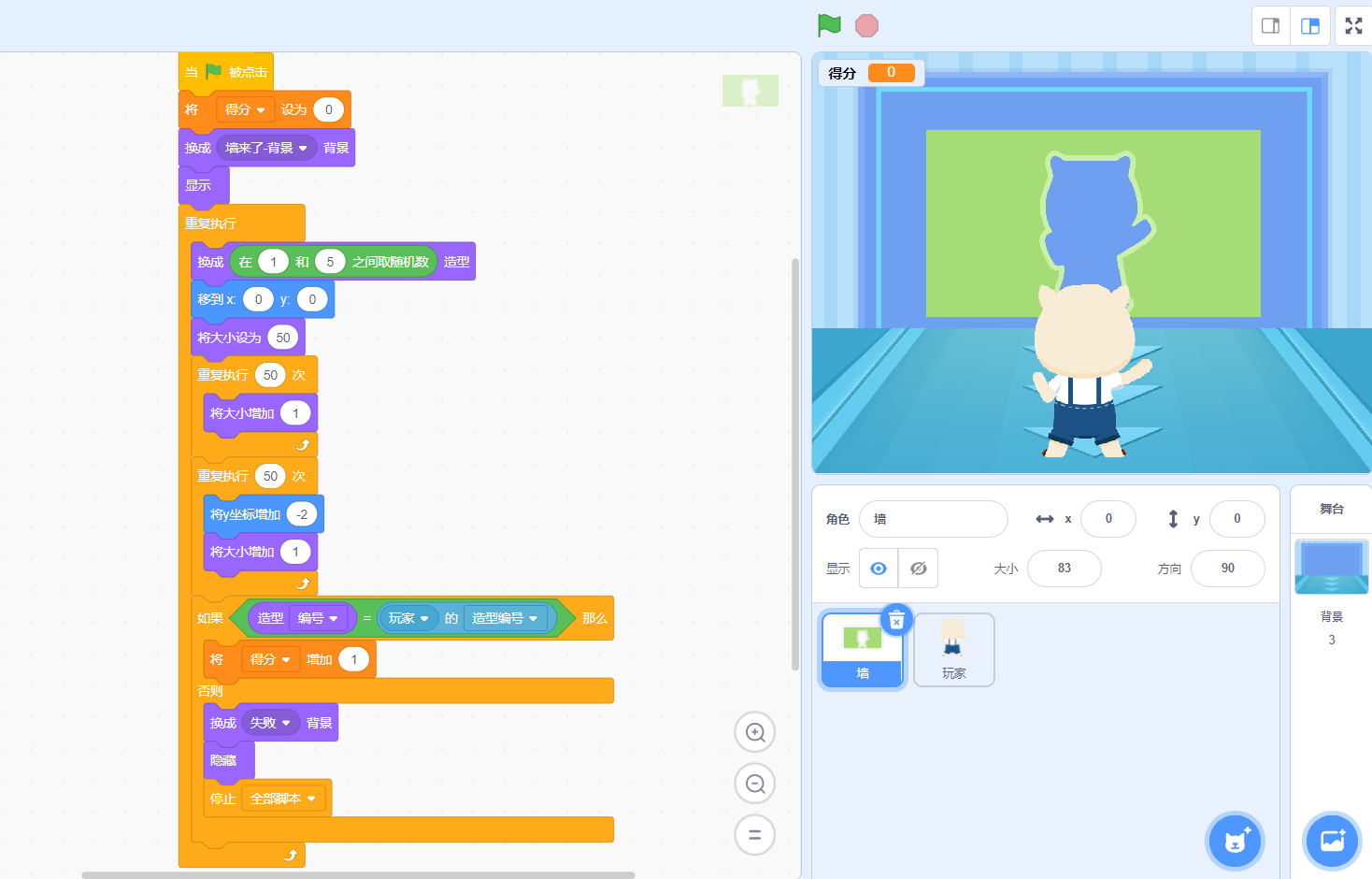 本文详细介绍了一个使用Scratch制作的快速反应游戏《墙来了》,玩家需要在墙移动到面前时按空格键切换角色造型,匹配墙上的造型即可得分。这是一个训练反应速度和观察力的有趣游戏。