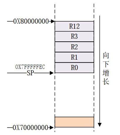 PUSH {R0~R3,R12} @将R0~R3,R12压栈