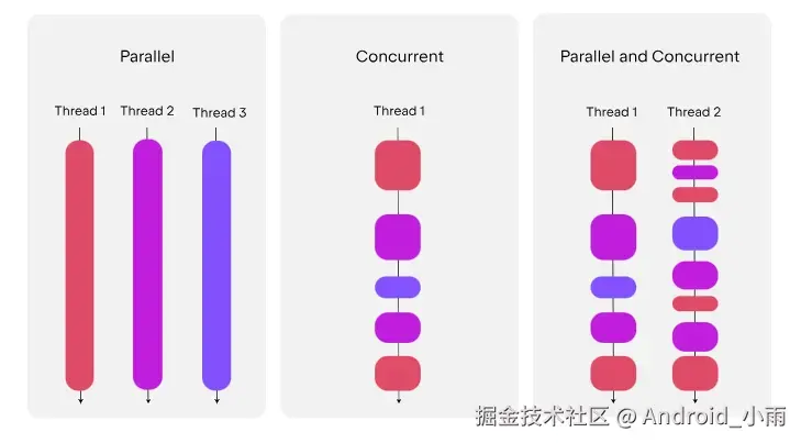 核心概念辨析:并发是"同一时间段内多个任务交替执行",并行是"同一时刻多个任务同时执行"。线程作为操作系统调度的基本单位,是实现并发/并行的传统方案,但存在显著限制: