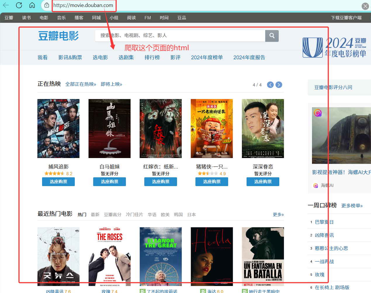 爬豆瓣的电影页面的html