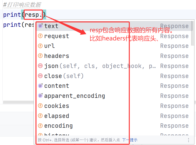 2.requests的结果(resp)中,都包含哪些内容?我们为什么要打印resp.text?