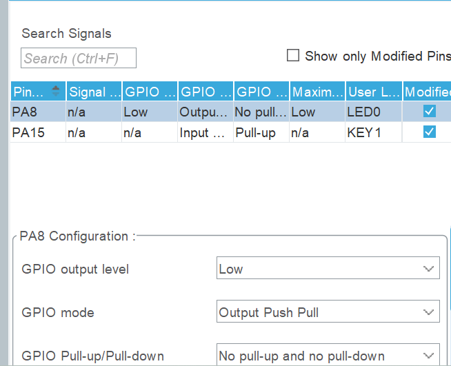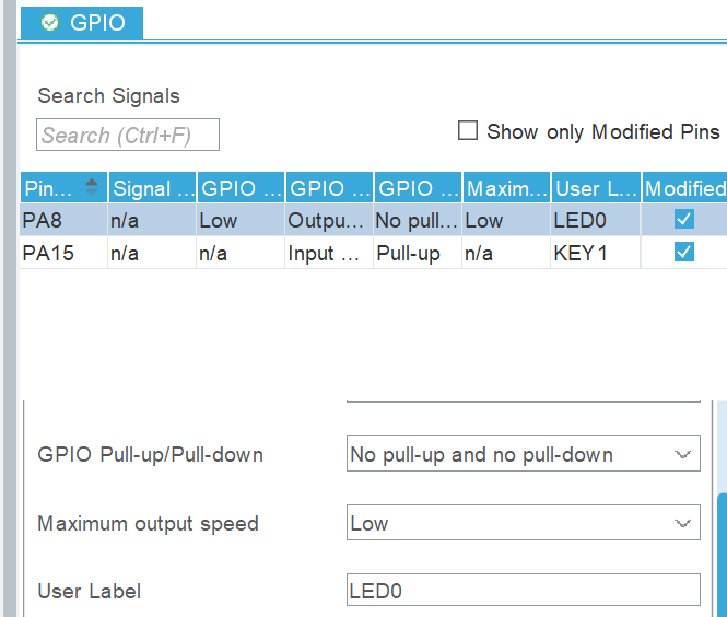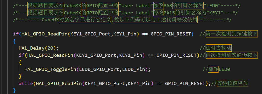 /*---根据题目要求在CubeMX的GPIO配置中将"User Label"修改PA8的引脚名称为"LED0"-----*/