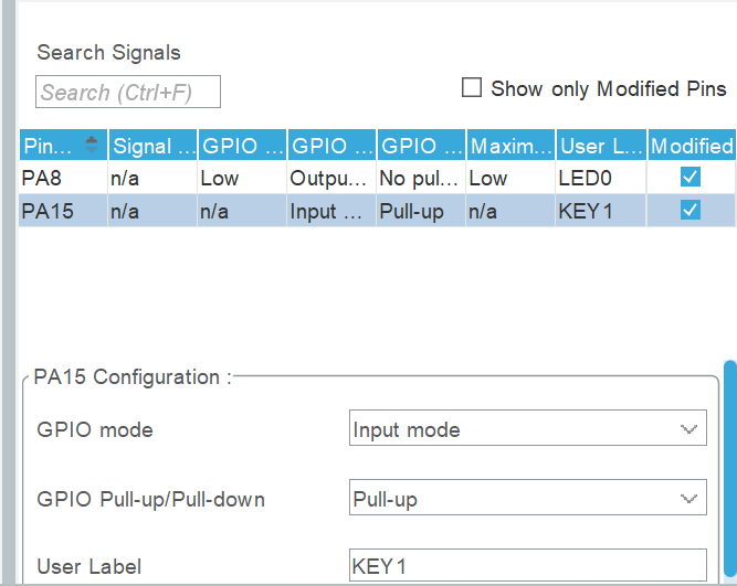 /*---根据题目要求在CubeMX的GPIO配置中将"User Label"修改PA15的引脚名称为"KEY1"---*/