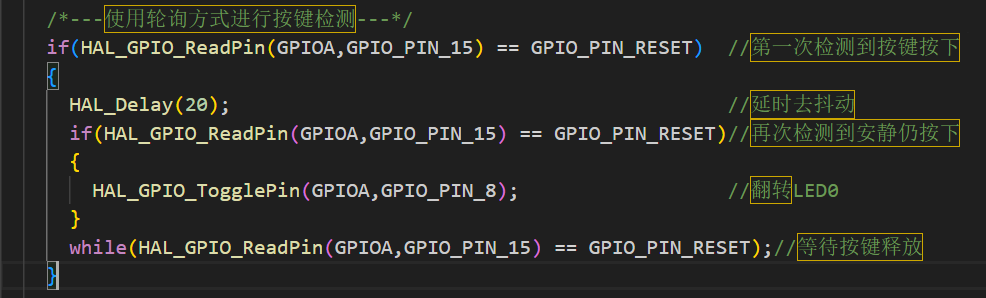 while(HAL_GPIO_ReadPin(GPIOA,GPIO_PIN_15) == GPIO_PIN_RESET);//等待按键释放