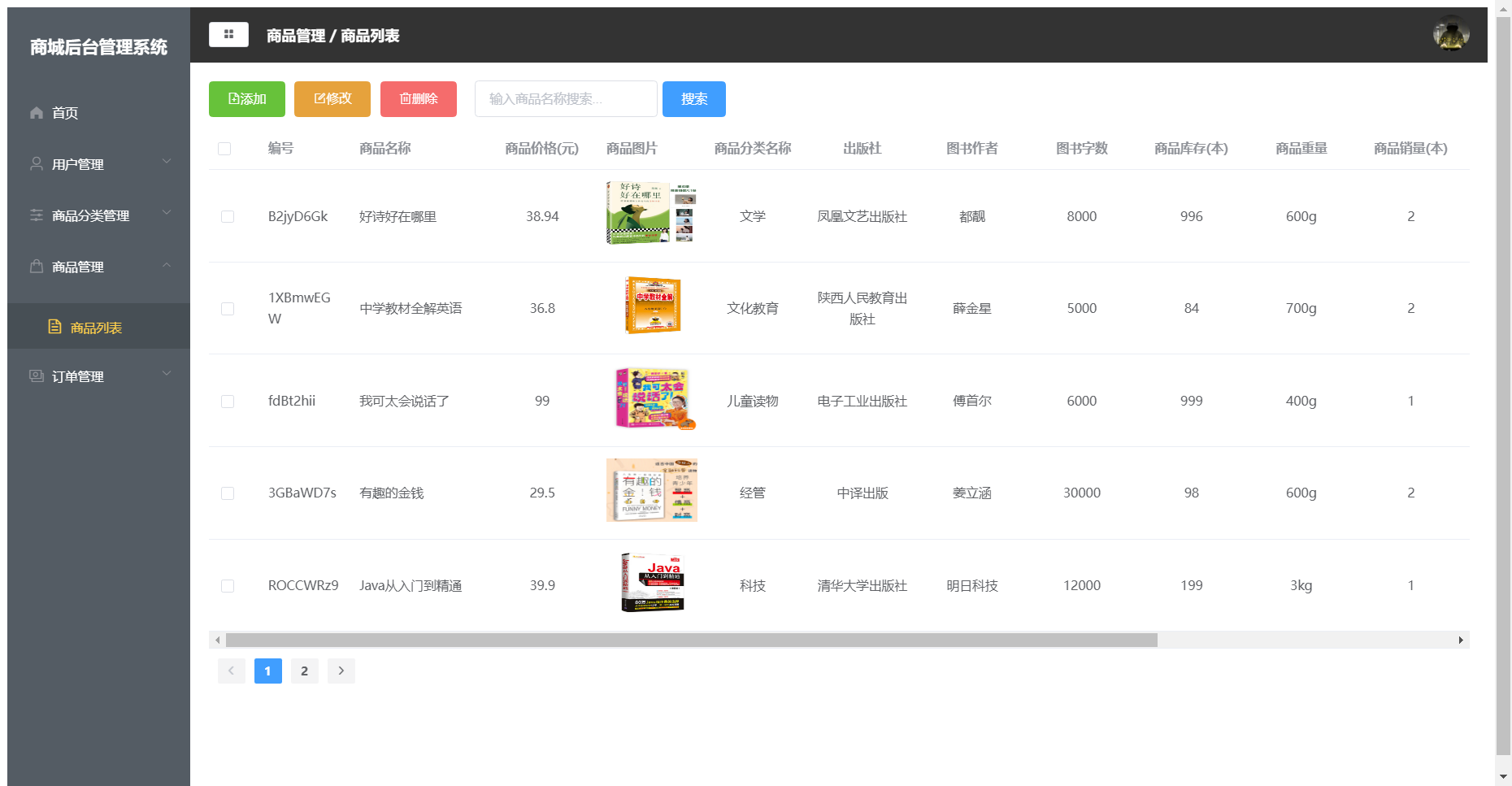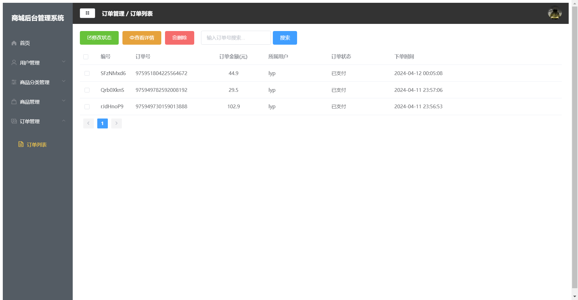 4.订单管理:修改状态、查询详情、分页查询、删除