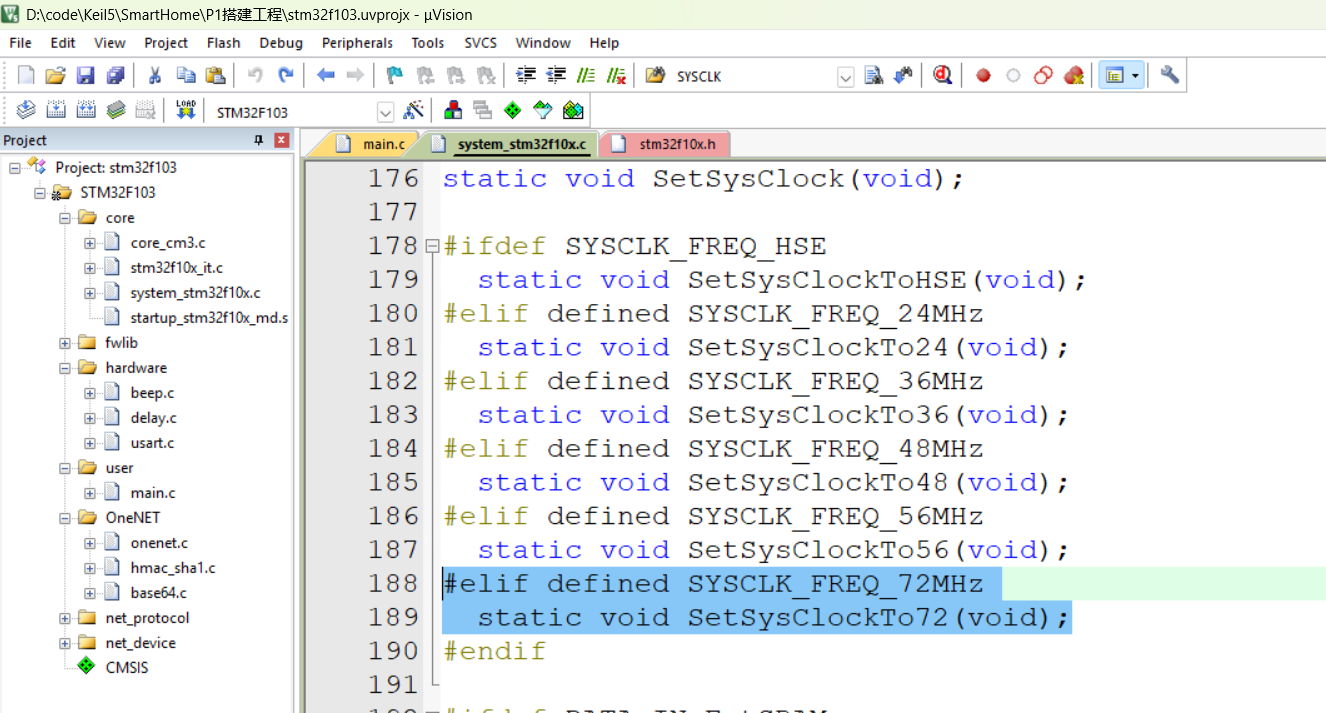 SYSCLK_FREQ_72MHz)对应的时钟配置函数