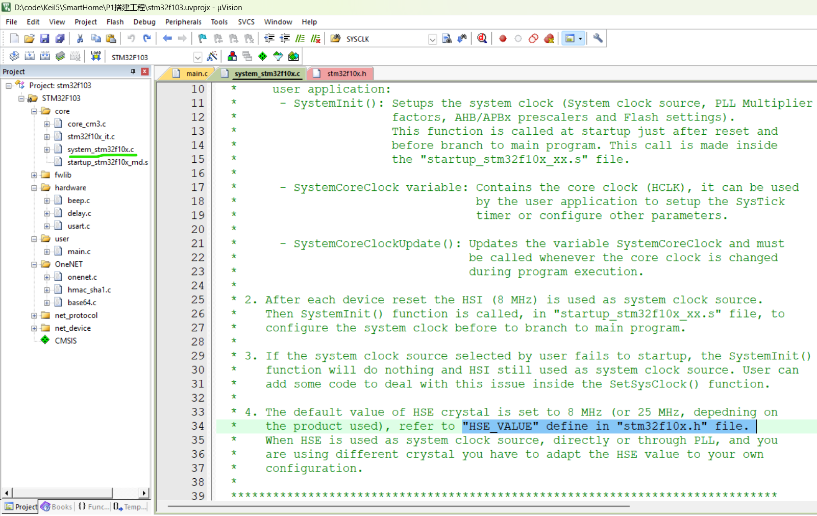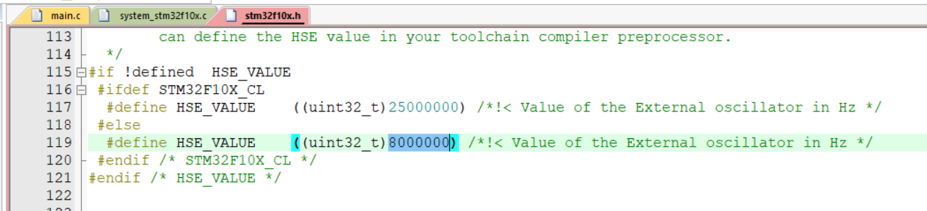 HSE_VALUE定义在stm32f10x.h,我们去stm32f10x.h搜HSE_VALUE