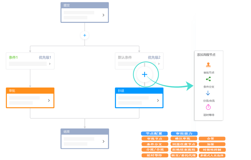拥有强大的流程设计能力,支持多种类型流程节点、丰富的审批人设置、审批规则与条件设置等,实现一站式开发、多端通用。以流程为驱动力,助力企业数字化转型。