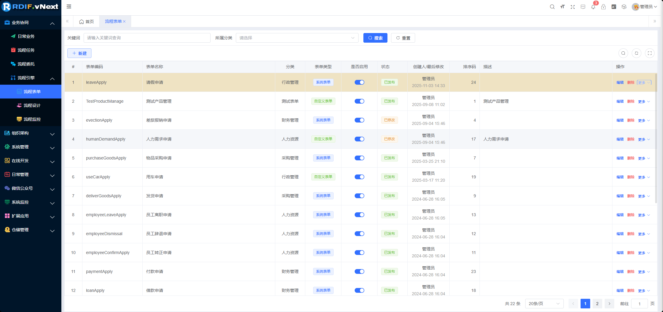 1、增加流程表单的独立设计,可单独设计流程表单,让表单可用于不同流程中,更加灵活方便。